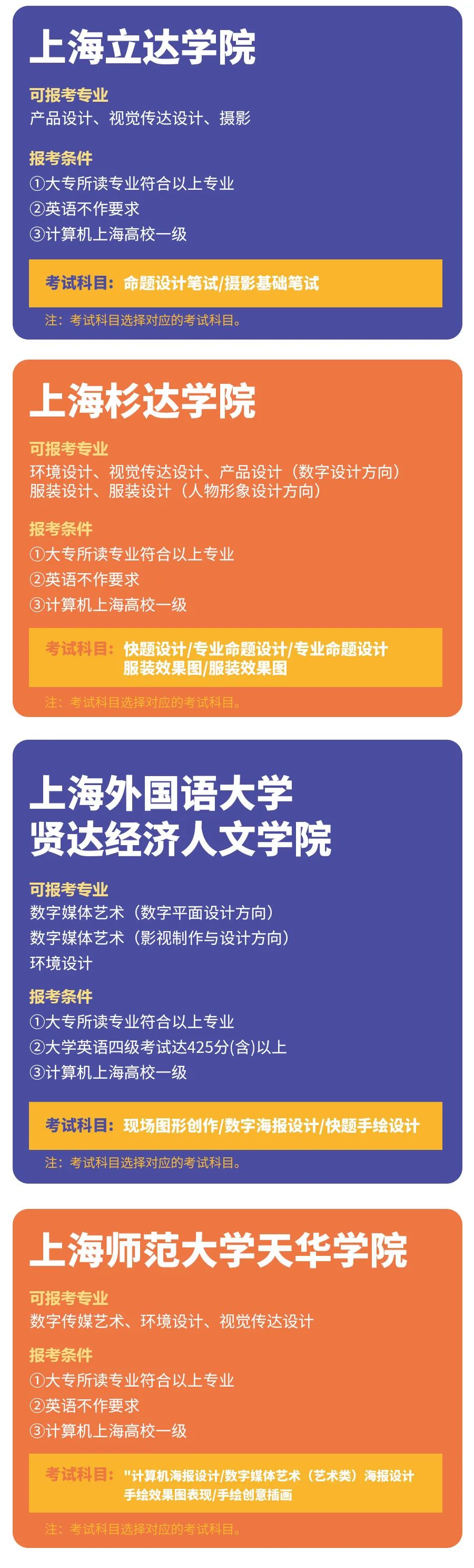很多大专的小伙伴会觉得自己学历不够,在读大专或大专即将毕业时,会考虑报考上海的本科艺术专业。据悉,上海艺术专业专升本,各个学校的政策有所不同,而这就需要自己有扎实的专业功底和提前规划能力、学习能力,使自己在进行专升本的过程中更有优势。